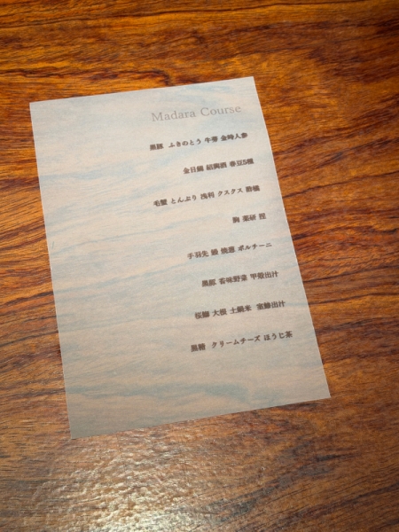 大阪・西天満の薪火コース料理店。まだらコース12,000円、ジビエコース14,500円、焼鳥会8,900円など完全予約制ディナー。